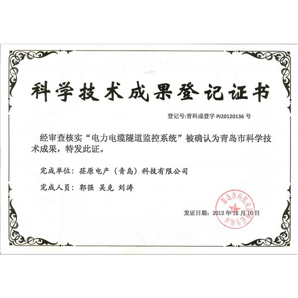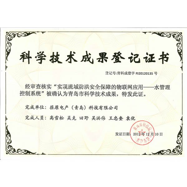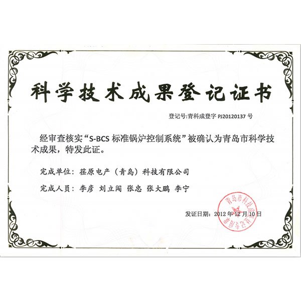 科學(xué)技術(shù)成果登記證書